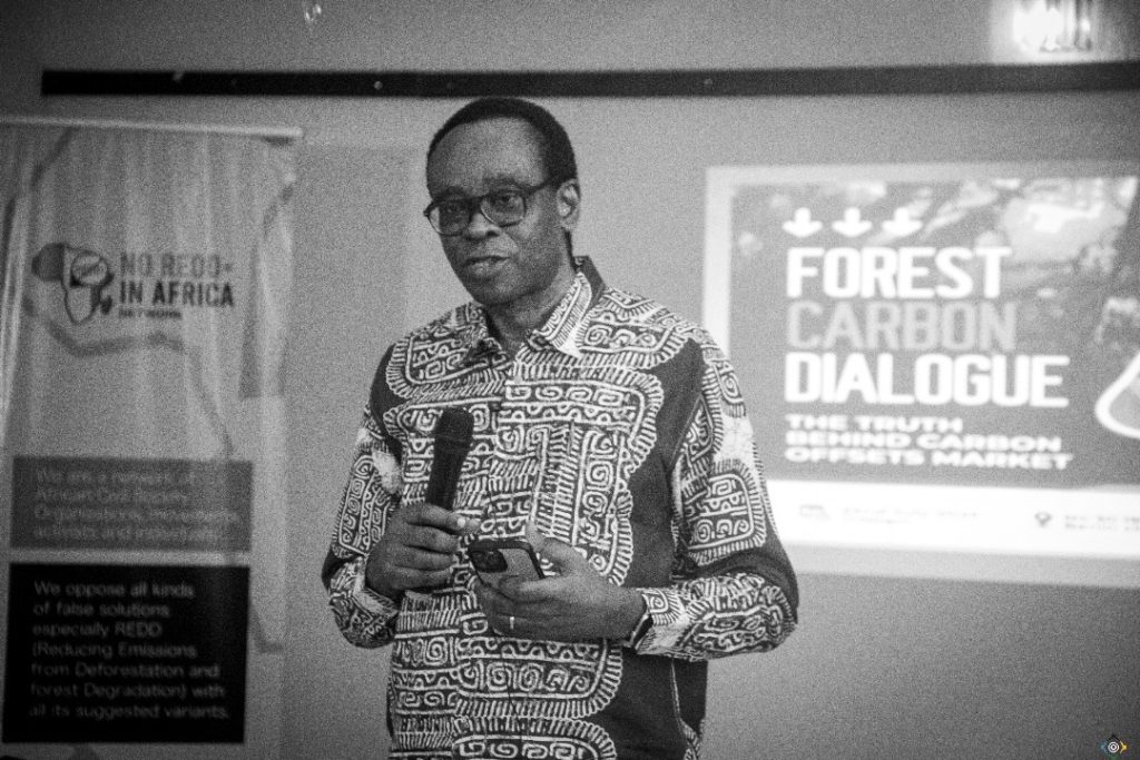 Dr. Nnimmo Bassey Director Health of Mother Earth Foundation in his welcome address emphasized the vital role forests play in climate change mitigation, adaptation and resilience while also serving as a source of medicine, cultural heritage preservation, protection, and livelihood for communities. He emphatically cautioned against the growing acceptance of carbon offsets, trading and market schemes describing them as a dangerous distraction from real climate actions. Dr. Bassey denounced the promotion of plantations as forest emphasizing that the plantations model of extractivism go as far back as pre-colonial times which ushered in the slave trade era, he further explained that plantation propagation is leading to new age carbon slavery calling it a continuation of colonial land grabbing masked as conservation. He concluded by saying Carbon Offsets should make everyone upset.